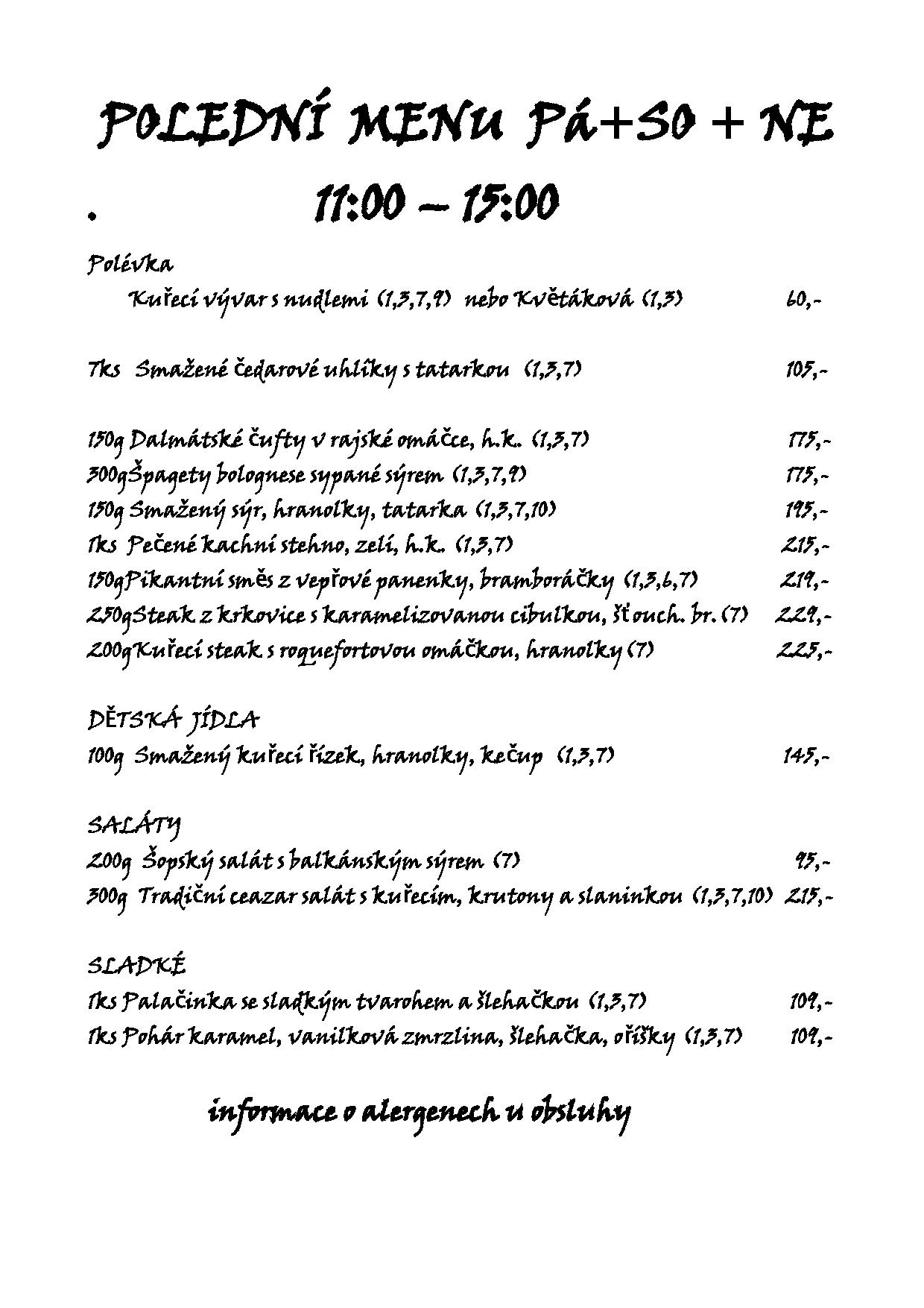 • Jídelní lístek